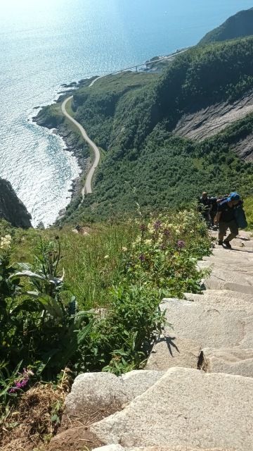 Čeká tě 1 km dlouhý výstup po 1978 schodem do výšky 448 m a nádherný výhled na fjordy a malebná městečka dole u moře.