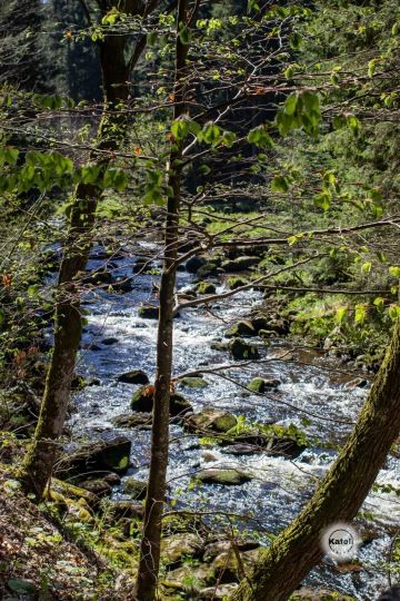 Cesta vede tak z poloviny ve stínu lesem, najde se i pár míst k posezení. Užiješ si skvělou podívanou na koryto řeky plné balvanů mezi kterými se točí proud řeky s menšími vodopády. A vše lemuje čistá šumavská příroda a krásný les z obou stran Vydry.
