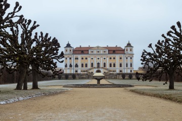 Za zámkem láká k procházkám francouzská barokní zahrada s bažantnicí, kam máš vstup celoročně zdarma. Hezký pohled na zámek najdeš u vzdálenější fontány a dál pak můžeš pokračovat doleva k menšímu rybníku. Od dubna do října je v provozu i kavárna, kde seženeš i dezerty, zmrzlinu, pivo. Za zmínku stojí taky zámecká konírna, kde nejsou živí koně, ale dětský koutek a brod s dřevěnými koníky. Anebo můžeš vidět výstavu dravých ptáků v zámecké jízdárně a vyzkoušet si přílet dravce na rukavici.