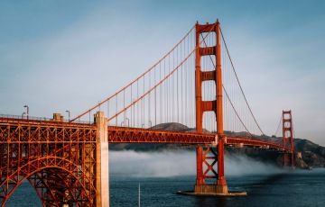 Jízda slavnou tramvají v San Franciscu z Market Street do Fisherman’s Wharf. Výhled na most Golden Gate.